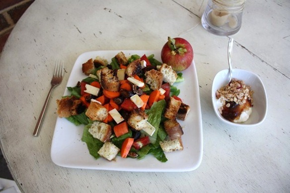 Wow that salad sounds UNREAL! I love having fresh bread/croutons in my salads, plus brie!