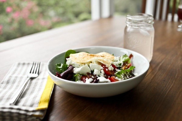 Matt and I planned a simple dinner before going out: salads with dates, goat cheese, tomatoes and egg on top.