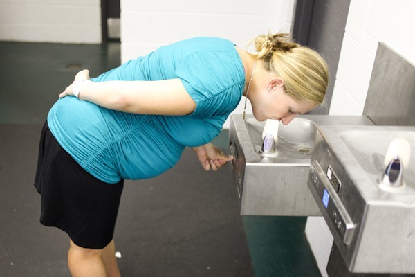There wasn’t much in the area of food (why we ate before) but there was tons of alcohol! Sadly we waited in line for 20 minutes for drinks to find out that the bar had nothing non alcoholic. Luckily I found a water fountain! [Most unflattering photo ever…]