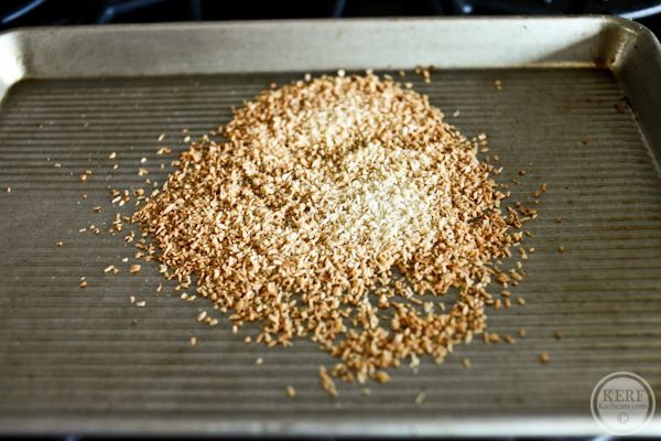 Toast 1/4 cup unsweetened coconut in the same pan for 4 minutes. Watch carefully so it doesn’t burn!