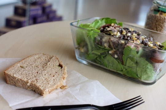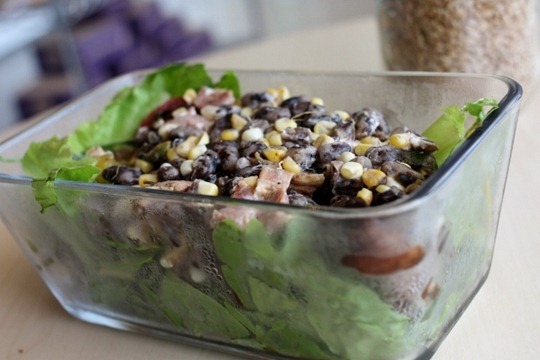 Last night I packed up the remaining Smoky Black Bean salad + our green salad in tupperwares for Matt and me for lunch. Leftovers have been great to eat up!