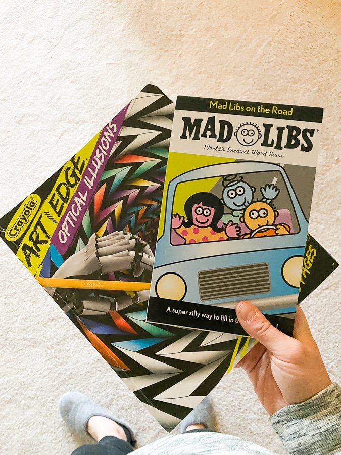 I found some Mad Libs (he’s the perfect age) and a cool optical illusion coloring book for him too. He also has this How to Draw Pokemon book that he likes.