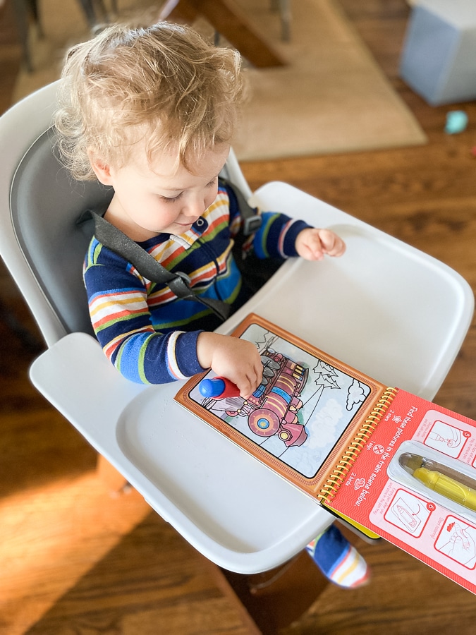 Our 18 month old LOVES our magna doodle! Color wonder and water wow are some of our favorites for this age too. Our 4 year old LOVES using those glitter glue pens for art projects! They’re fun to use on their own or mix in paint for a glitter effect!