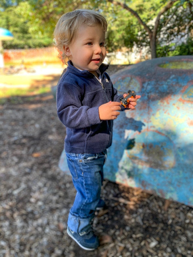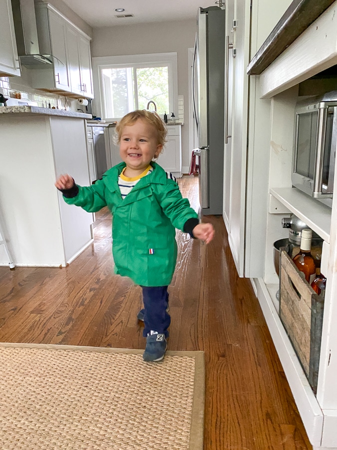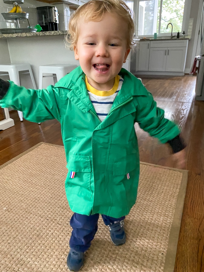 Birch wanted to show off his new raincoat! A super cute Amazon find.