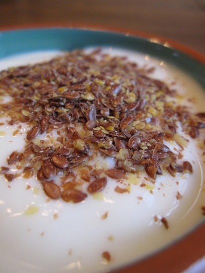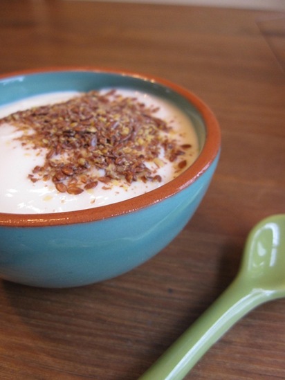 Half a cup of TJ’s Euro yogurt with some flax
