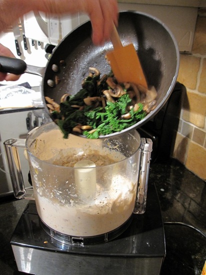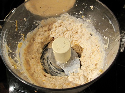 The tofu ingredients, pureed, followed by 3 pulses of the cheese.