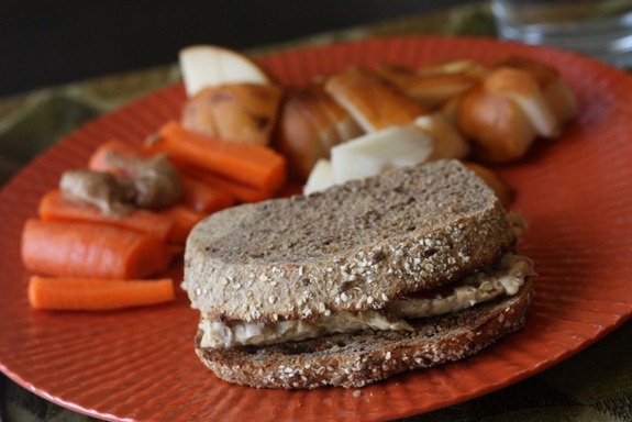 I made a tempeh + plum jam sandwich on Flax Oat Bran bread.