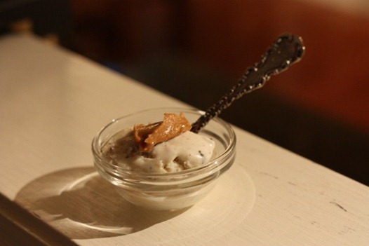 Matt dug back into last night’s gelato and I asked him to pack me a bite. Instead of on his spoon, he brought the single bite in a little pinch bowl – topped with some peanut butter. It was tiny + tasty.