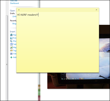 There’s also a nice updated sticky note feature. Remember in Vista how it was over on the sidebar, small and very limited? Now you can open a note and stick it anywhere. So nice for little jots!