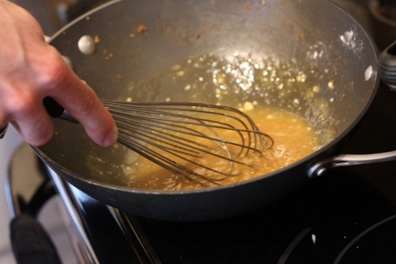 Plus tamari, OJ (1/2 a cup?), and flour to thicken because we’re out of cornstarch –