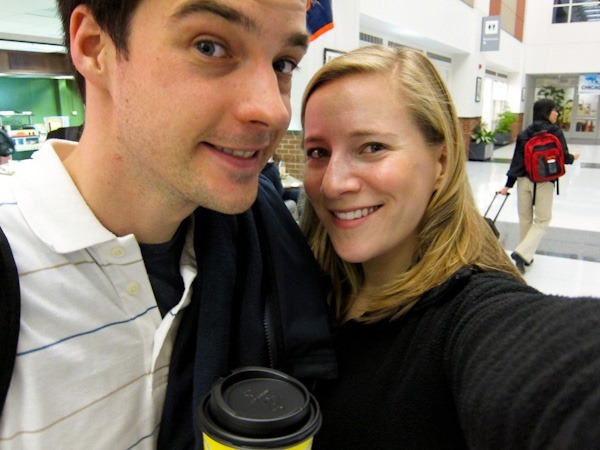 We were up at 4:45 to leave for the airport. All excited and chipper for now!