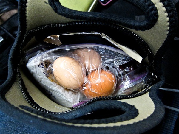 As much as I love hard boiled eggs, the only place I eat them is in the privacy in my own home. Too many other funky smells (and funky people) in the close confines of a plane.