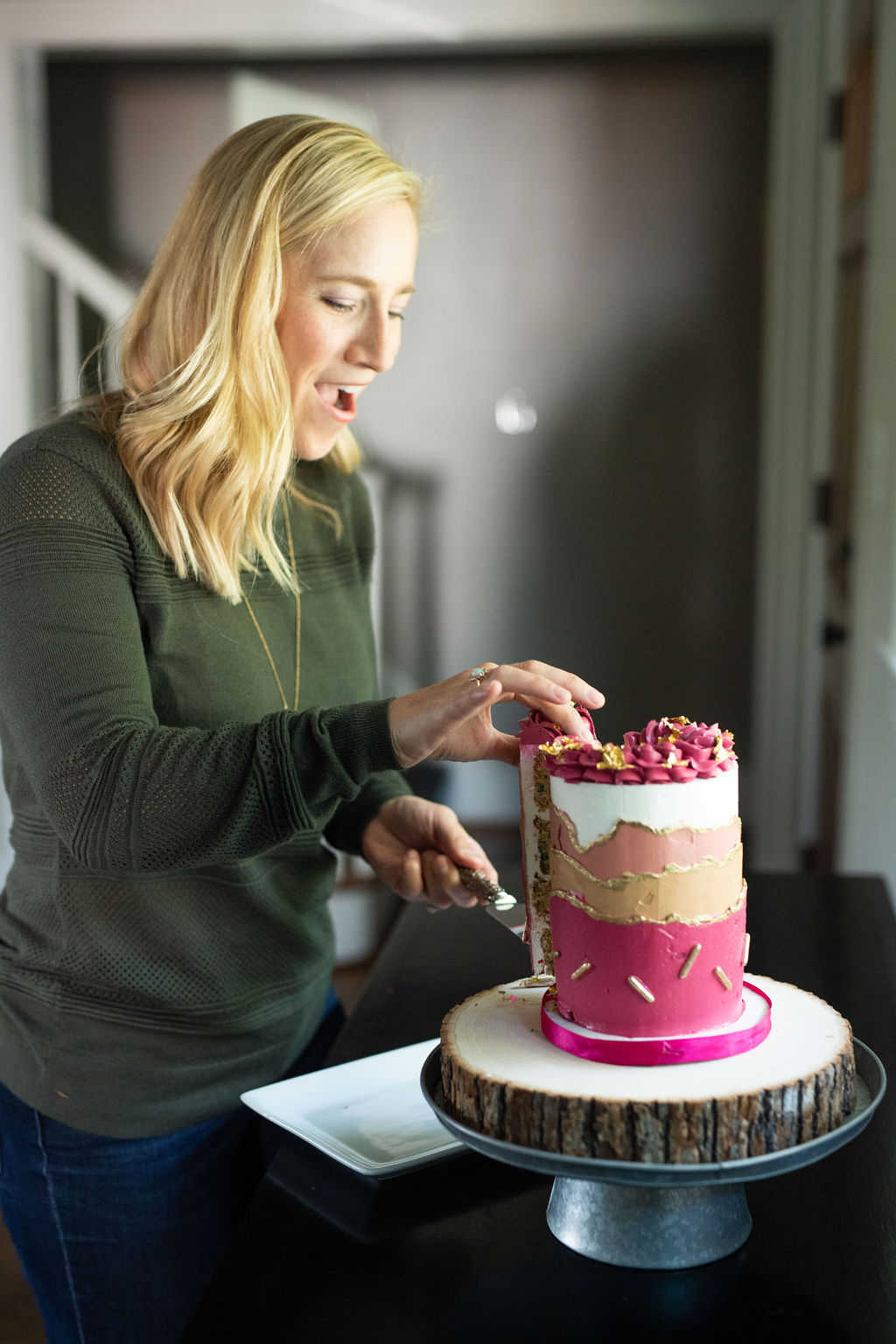 I asked for sprinkles and had no idea there would be a sprinkle explosion hidden on the inside!! I was so glad our photographer Sarah Cramer Shields was there to capture it during our family photo shoot!