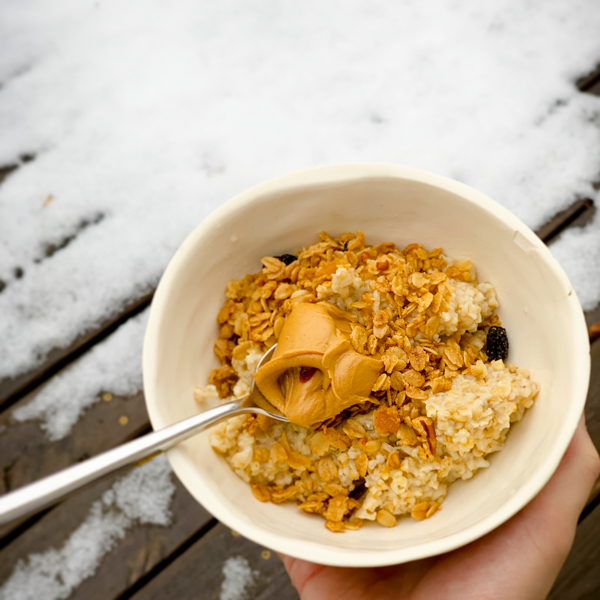 Oatmeal. Smoothie. Yogurt bowl. Repeat! That’s been my breakfast rotation. Since I don’t want to be leaning over the stovetop while babywearing, I’m making oatmeal in the rice cooker and saving eggs for the weekend. Smoothies from Daily Harvest or Sub-Zero are the easiest to make with one hand. I made some more of my new favorite granola and have the recipe post coming right after Christmas!
