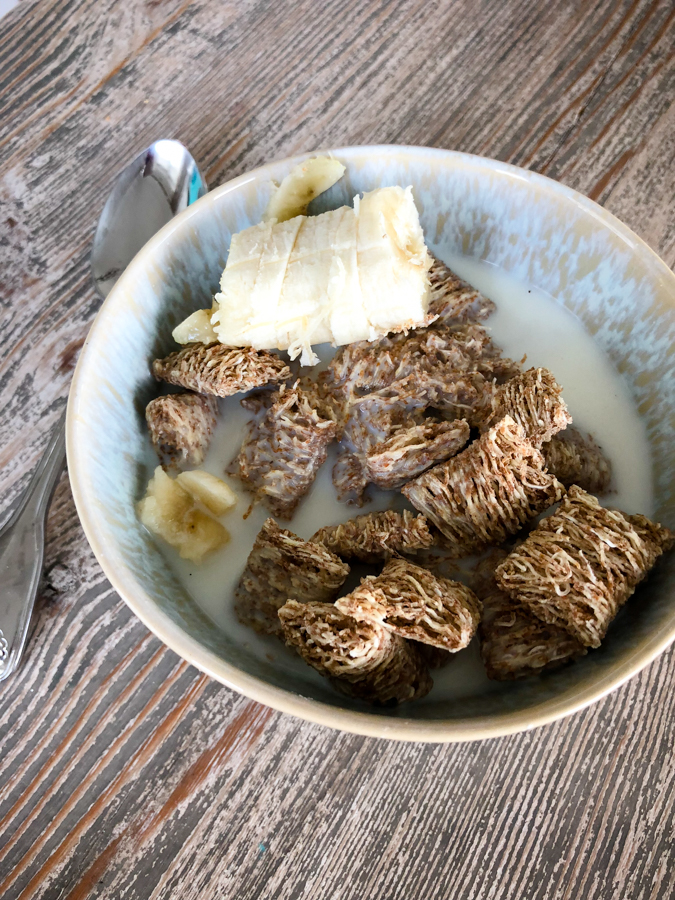Breakfasts have been simple bowls of fruit, yogurt, and/or cereal.