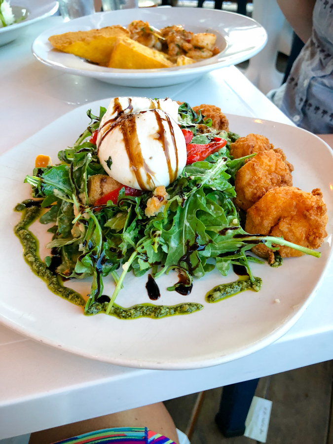 Hushpuppies with cinnamon butter and a panzanella and shrimp salad for me!