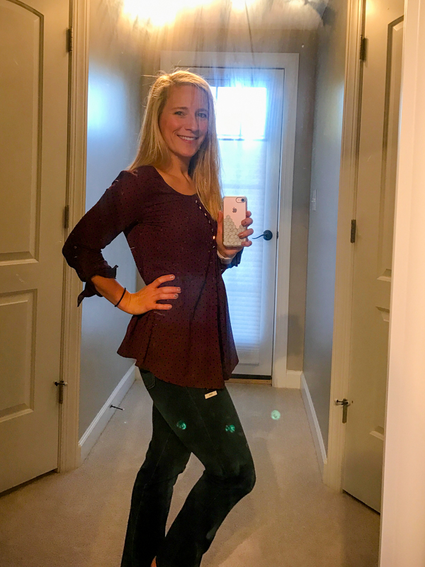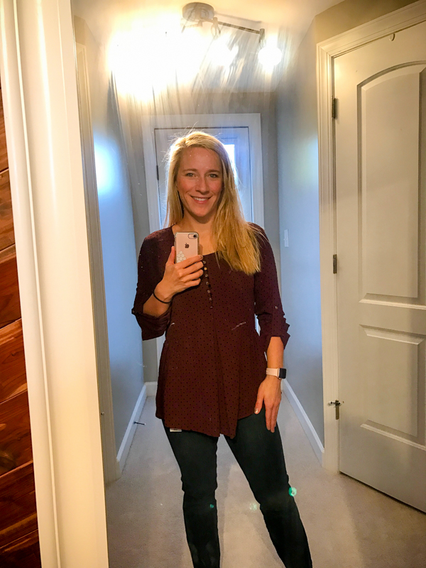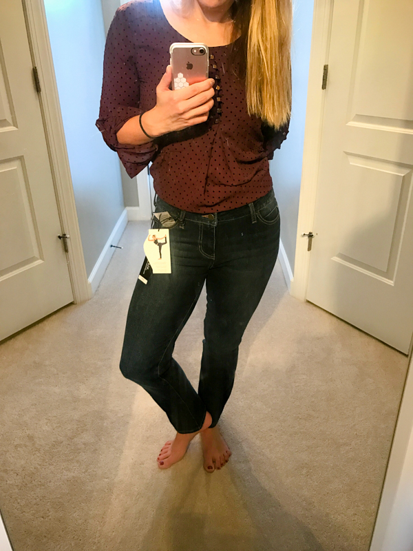 Ooh I actually love that maroon top! I know what you mean about the jeans. I kept a very expensive pair stitch fix sent me, but hardly wear them now because I have to constantly pull then up :/ funny, probably my favorite pair of jeans is actually from Wal-Mart that I had to buy on the fly! $28 ha ha