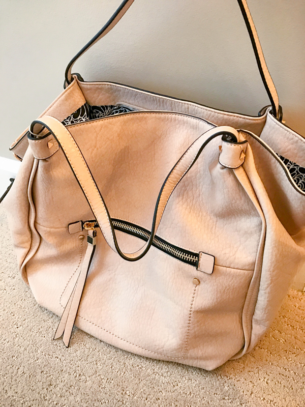 First up, this beautiful purse! I loved the rosey pink, the soft leather, and the interior pattern, BUT I have a coral purse – which I got from Stitch Fix a year ago – that I love and use, so I considered this a duplicate to something I already own (although it really is quite different in style.)