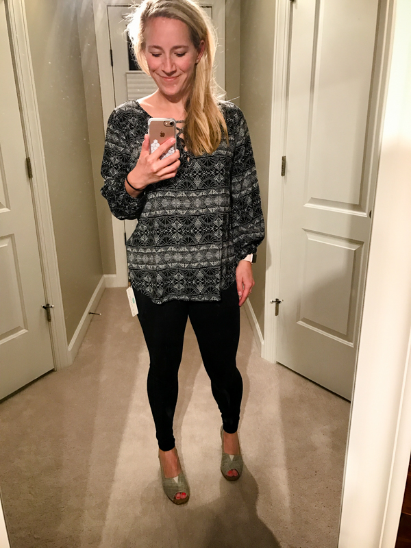 This top was flowy and cute, but I wasn’t wild about the maroon color. I also thought it made me look pregnant because it poofed out in just that spot, and I don’t want those kinds of rumors starting now, do I!