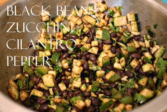 And made a big green salad with the leftover black bean filling and Garlic Gold vinaigrette and goat cheese!