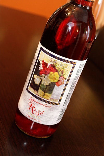 Given our choice of movie, it only felt right to have a little Virginia wine. Sadly all we had in stock was a Rose from Jefferson Vineyards.