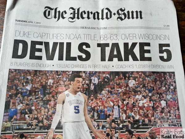 Matt and I stayed up late last night watching Duke win!! I held my breath the whole second half – it was a good game. So happy for Coach K too!