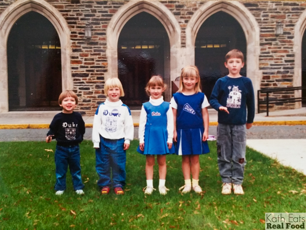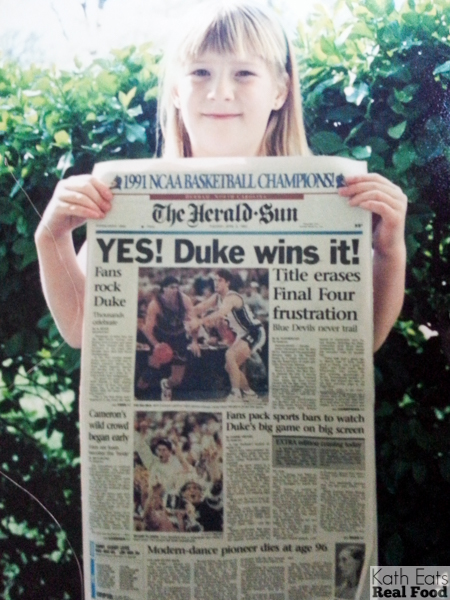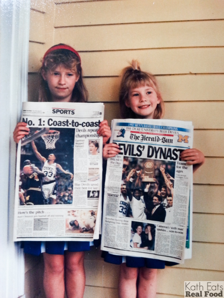 When Duke won in the championship in 1992 our parents took us out of school (which was rare and sooo exciting!) to welcome them home to Cameron. I remember there was a HUGE cake – the size of a table! This was from that day (with our friends the Elys!)