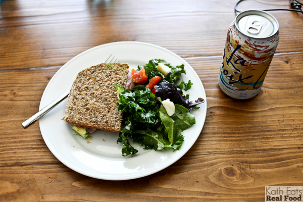 Lunch was a sandwich inspired by Matt’s sandwich: leftover ham and avocado with mayo (key for an epic sandwich, as Matt will tell you) and Dijon mustard (key with ham!) Plus leftover kale salad on the side. A little cake for dessert!!