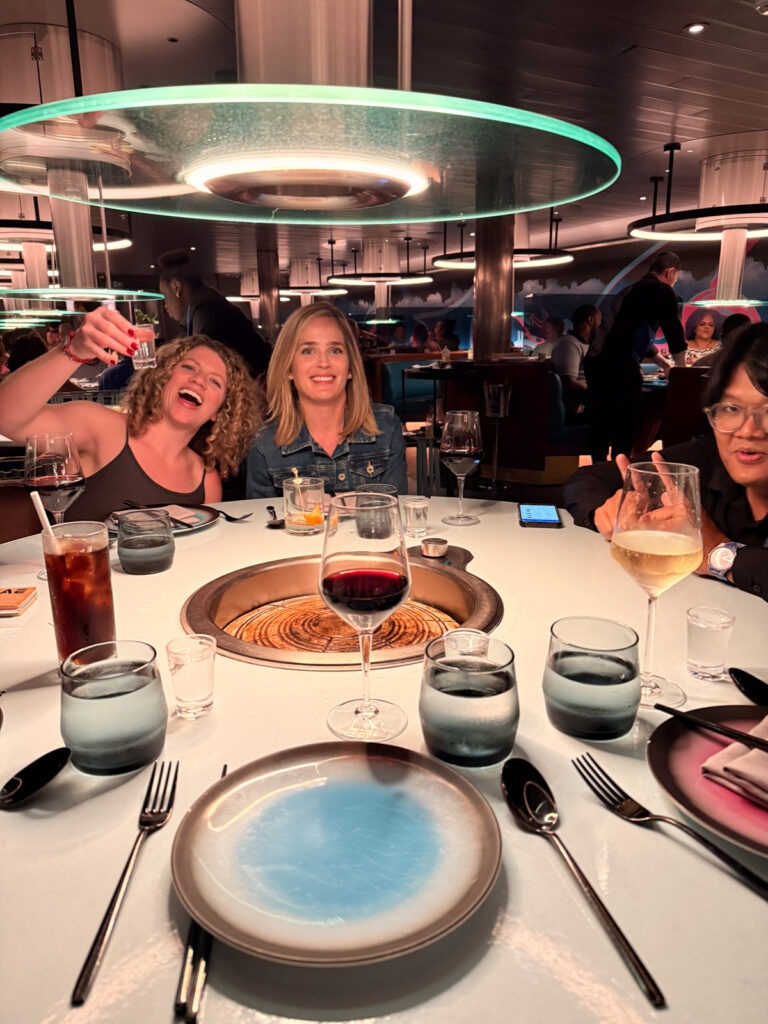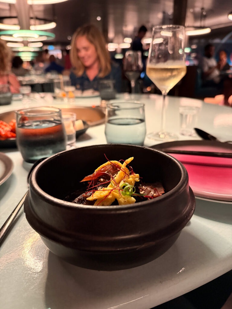 Gunbae was the Korean BBQ restaurant on the ship, and it was a good time! They taught us a drinking game where you count upwards and clap on the 3-6-9’s. We loved the game!! We did not take the shots – so Jonathon had them! Learn the game here.