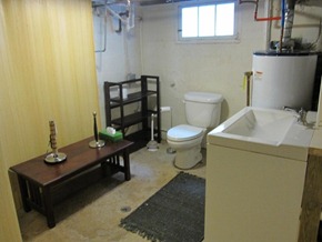 love the wood floors and the porch! is that a random toilet in the basement or garage?!