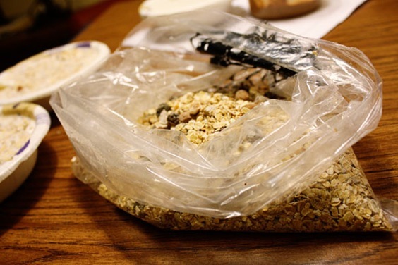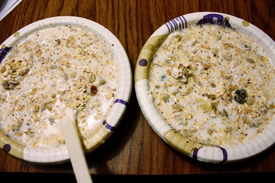 We bought muesli from the bulk bins in Missoula (but you could also just use plain oats of any style or instant oats)