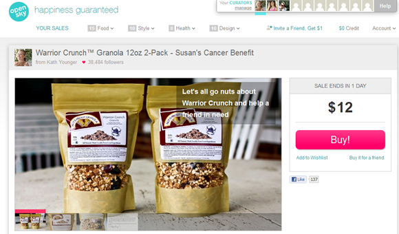 Today’s OpenSky deal is more than just some delicious granola – all purchases go towards helping blogger Susan, who writes The Great Balancing Act. Susan was diagnosed with Lymphoma this summer and is in need of financial support to help pay for her treatments.