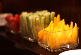 I piled my plate with veggies + hummus and tastes of breadstick, apricot and cheese