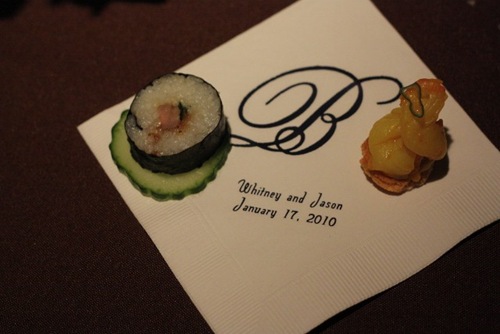 I love the personalized napkins…so want to do that for my wedding. What an elegant cake. Looks like a fun night! Safe travels home : )