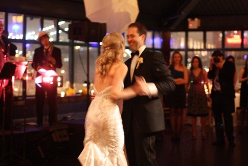 After the ceremony we had the hardest time hailing a cab!!! It was freezing, raining and windy and no cabs seemed to want to pick us up. My poor frozen feet! But we eventually found one and went to the reception site downtown. We arrived a half hour early, so the gentlemen headed to a bar – conveniently a microbrewery – for a drink.