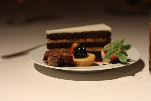 Cake on the plate. Plus 3 more bite-sized desserts! I didn’t quite finish this all (more sharing!!) but it was delish.