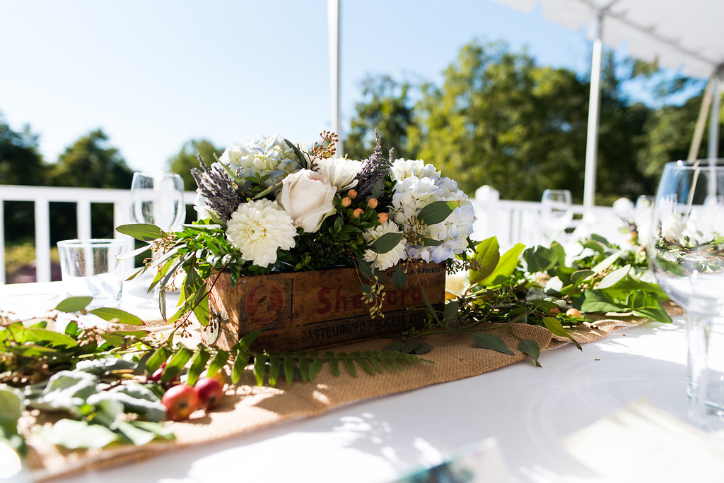 I used my grandmother’s vintage pitcher collection for the floral arrangements, along with the wooden cheese boxes that my mom and grandmother passed down to me over the years.