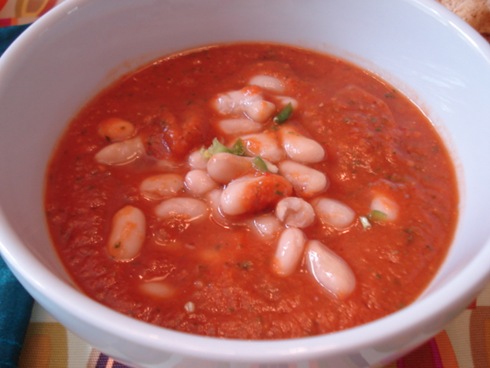 The husband made gazpatcho yesterday with some of our CSA ingredients. I was looking forward to a big bowl all morning, but I couldn’t even finished this bowl, as chilled soups sometimes get kind of gaggy towards the end. I added half a cup of white kidney beans to add a little protein and fiber for staying power.