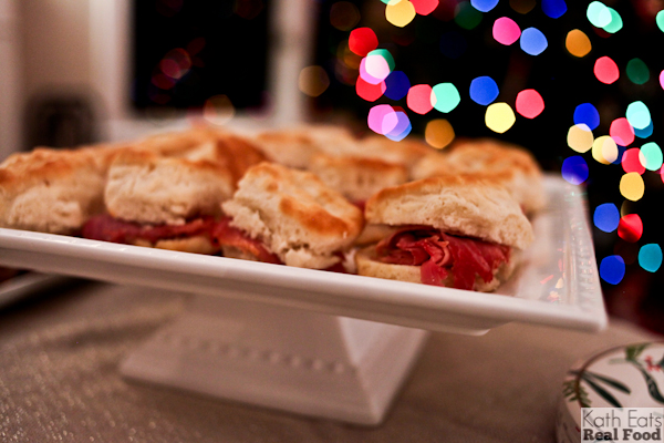 I love the pic of the little sandwiches with the lights sparkling behind them. What a great shot!
