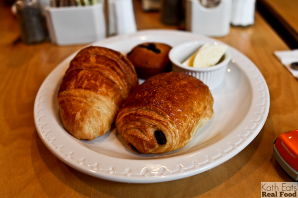 We started with the bakery basket – two croissants (plain and chocolate) and a cranberry muffiny thing with a French name that slipped my mind!