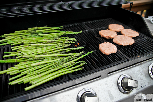 What recipe do you use for your turkey burgers? I had to laugh, because I just about grilled asparagus last night to go with ours!