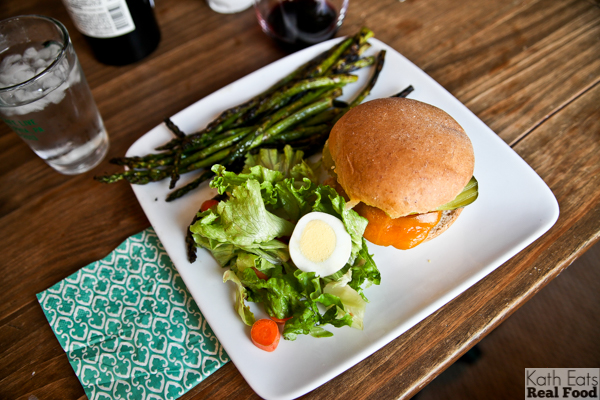 We had turkey burgers on homemade buns with salad and grilled asparagus.