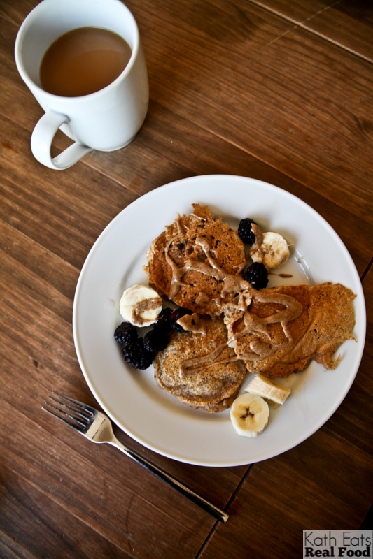 Sunday morning we made flax pancakes. Topped with banana, blackberries and almond butter.