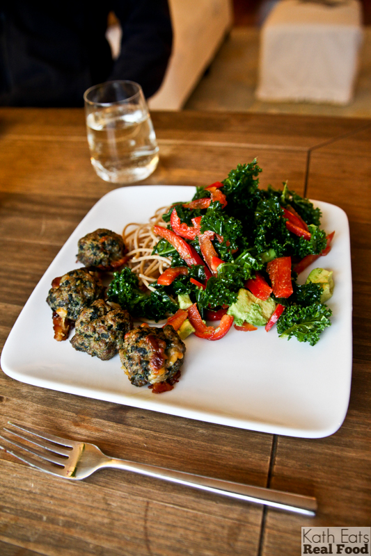 Friday night we had no plans and ate leftovers for dinner – meatballs, noodles and an amazing kale salad with red peppers, avocados and the Whole Foods Lemon Basil dressing.