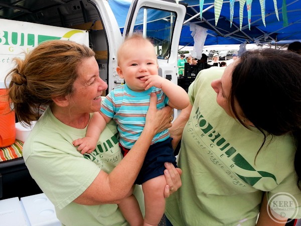 The No Bull Burger ladies always have to get a squeeze in with Mr. M! He sampled some of the lentils from their burger – baby approved. [He also started feeding himself overnight!]