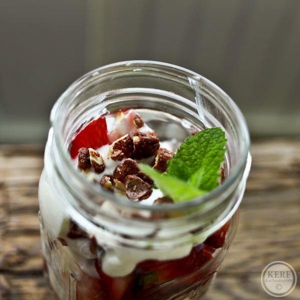 Yogurt and strawberry parfaits with chopped almonds and mint!