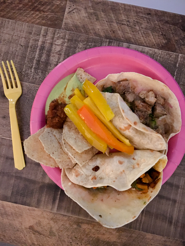Afterwards we enjoyed Coronas and Brazos tacos!! Plus chips and a veggie platter. Oh and Great Harvest cookies!! TWO tacos for meeee!