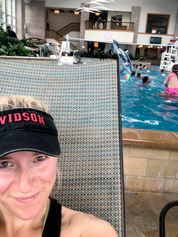 The adults had a little downtime, and Sarah and I got in an interval workout in the gym. I did some reading by the indoor pool afterwards.
