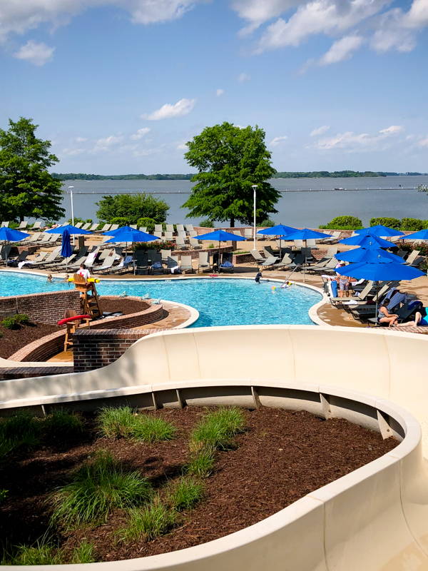 Hi guys!! We had such a fun weekend away with Sarah and her family! They had an accumulation of travel points to use on a Hyatt trip and invited Mazen and me along to join them. We shared a lovely 2-bedroom suite at the Hyatt Regency Chesapeake, which was SO nice and kid friendly. Sarah had been there before and promised us a relaxing time!