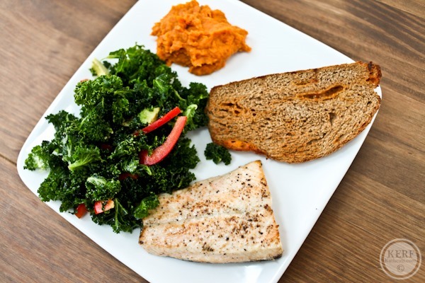 Served with a massaged kale salad with avocado and red pepper in lime juice and garlic gold, Cheddar Beer bread from the bakery and whipped sweet potatoes (more on these later!)